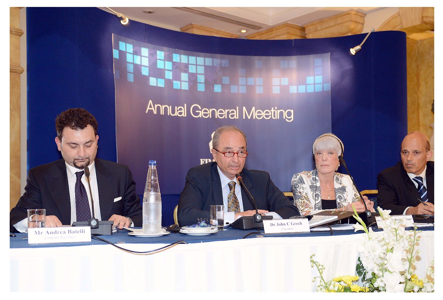 FIMBank plc yesterday held its Annual General Meeting at the Hilton Hotel in St Julian’s, Malta. The Meeting was introduced by the Chairman of the FIMBank Group, Dr John C. Grech, who explained the background to the Group’s performance last year. He said that 2012 unfolded as a year when most of the North African and Middle Eastern markets where FIMBank is active remained clouded by political instability. Dr Grech pointed out that the positive performance of the Group reflected the success of the adopted strategies, the strength of the values that drive the group, as well as the quality of the people engaged at all levels within the organisation.